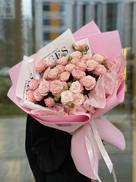 Букет Кустовые розы в розовом