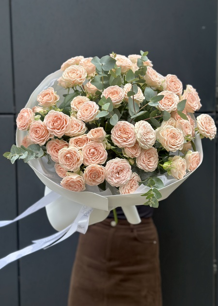 Букет кустовых роз с эвкалиптом
