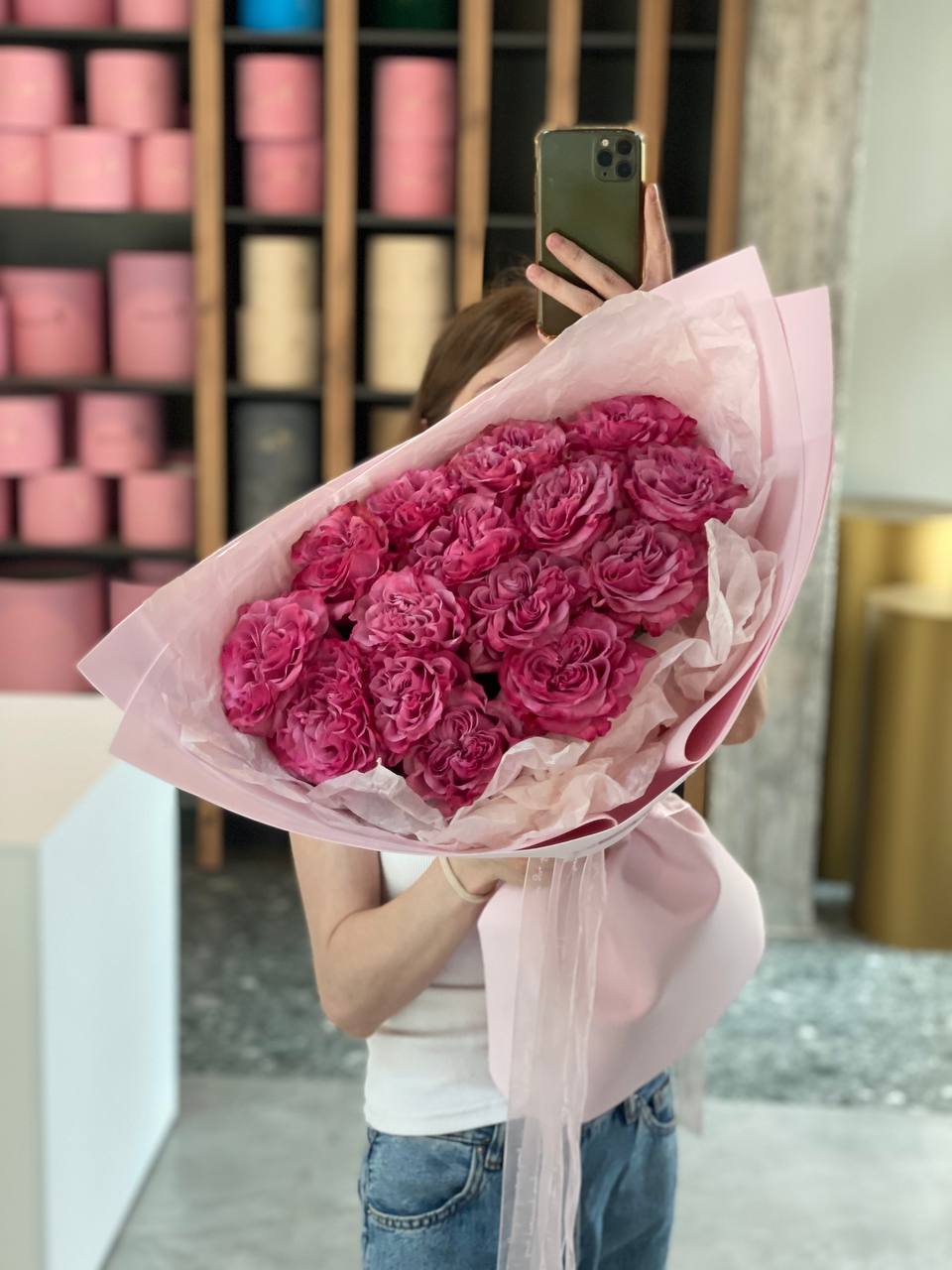 Пионовидные розы — это уникальное творение селекционеров, вобравшее в себя всё лучшее от двух королев цветов: безупречную форму розы и трепетную, многослойную пышность пиона . Их крупные, густомахровые бутоны с нежными, словно шёлковыми лепестками, раскрываются медленно и грациозно, даря долгое наслаждение и позволяя каждый день замечать новые нюансы их красоты . Букет «Пятнадцать объятий» — это ода самой нежной, трогательной и благодарной любви.