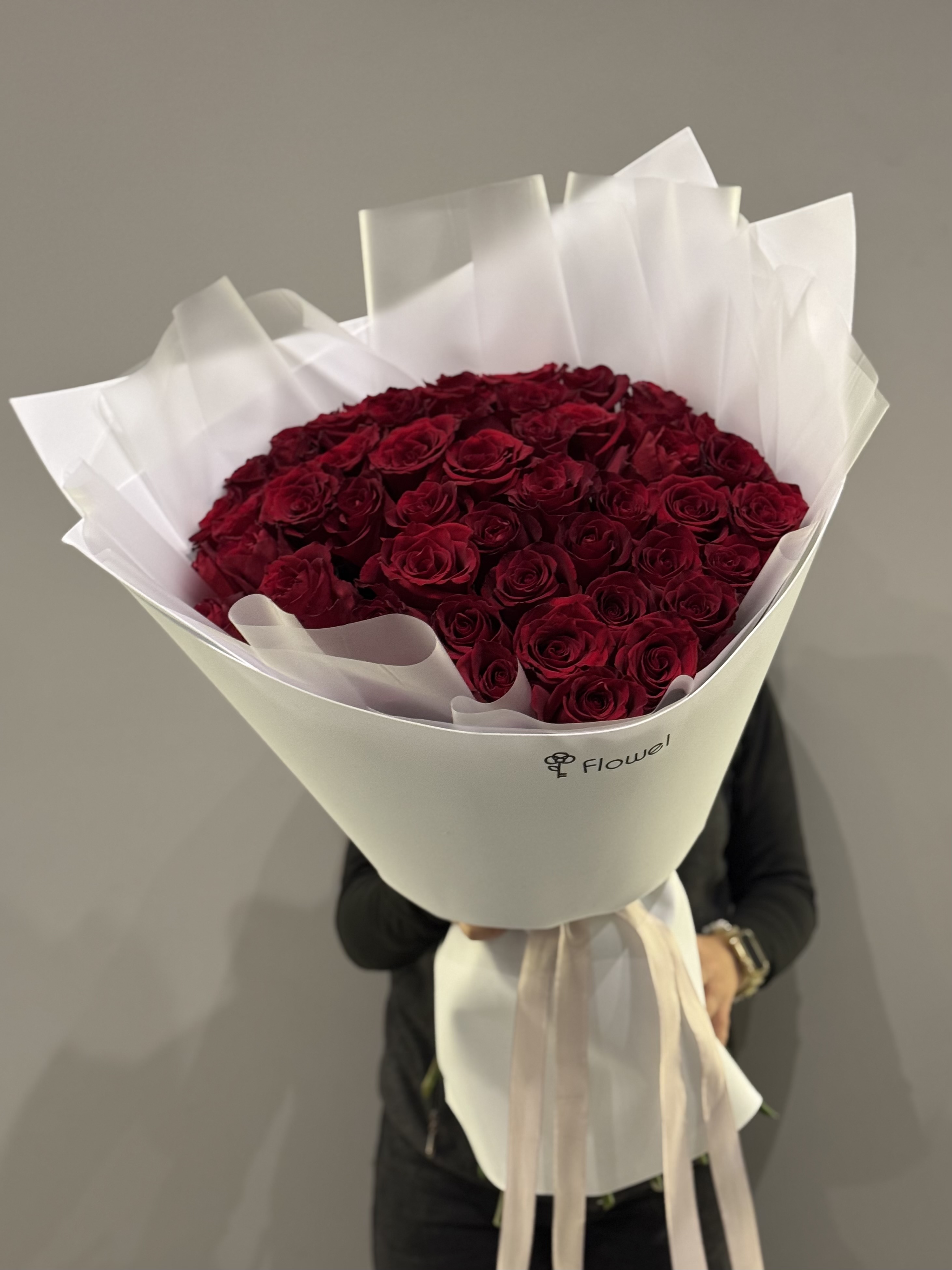 43 розы сложно найти в одном месте в нужном оттенке. Красный красному рознь. Есть оранжево-красный — дешевый, крикливый, маркетинговый. Есть синевато-красный — холодный, неживой. Нам нужен тот самый красный — вишневый, чуть приглушенный, с легкой бархатистостью на кончиках лепестков.