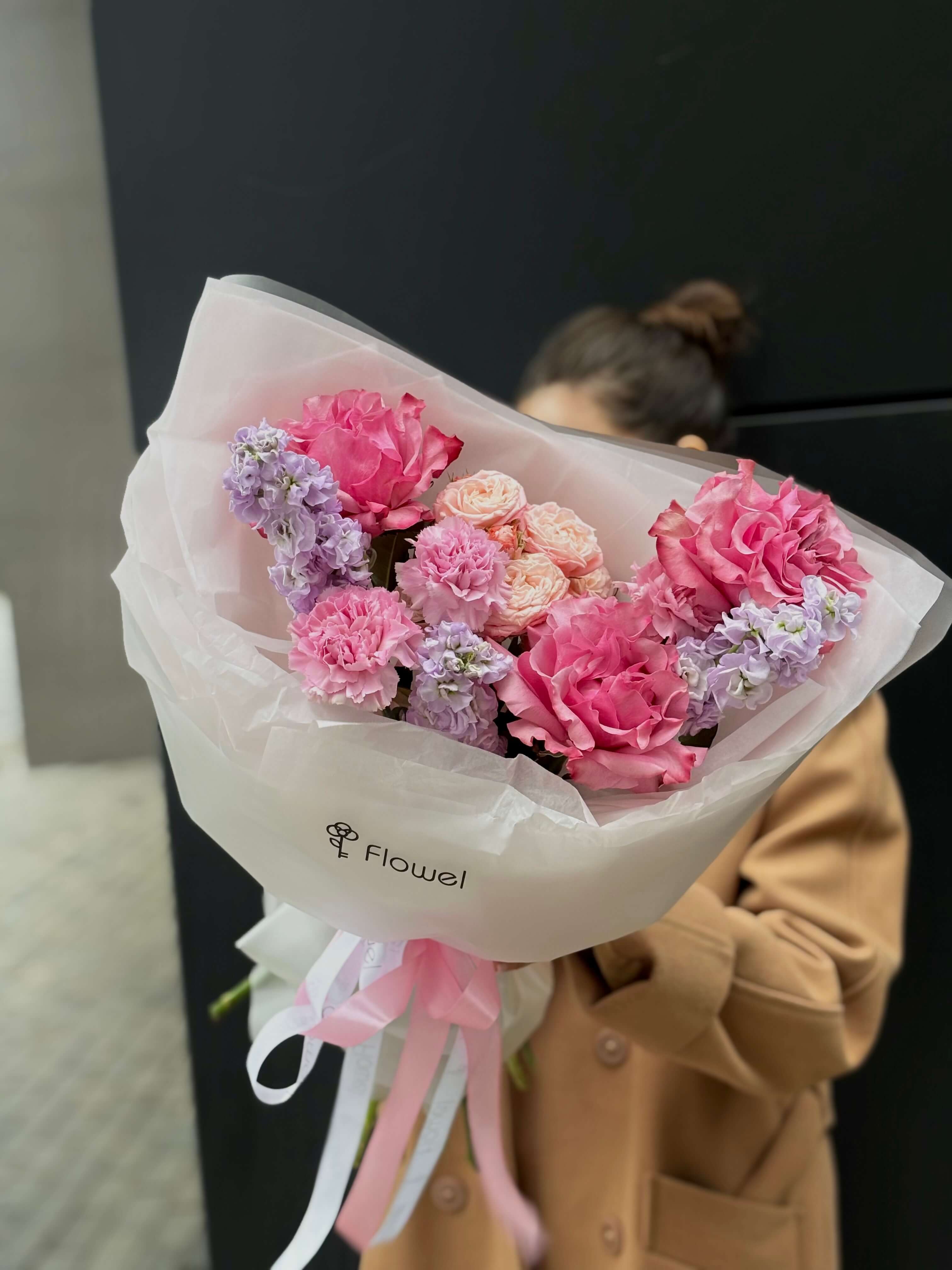 Некоторые цветы дарят красоту. А некоторые — возвращают в прошлое, пробуждая самые тёплые воспоминания. Маттиола (левкой) — из вторых. Её сильный, сладковатый, ностальгический аромат, который раскрывается к вечеру, — главный герой этой композиции. Мы окружили её классическими символами любви и уважения — розами и гвоздиками, создав букет не для взгляда, а для чувств и памяти.