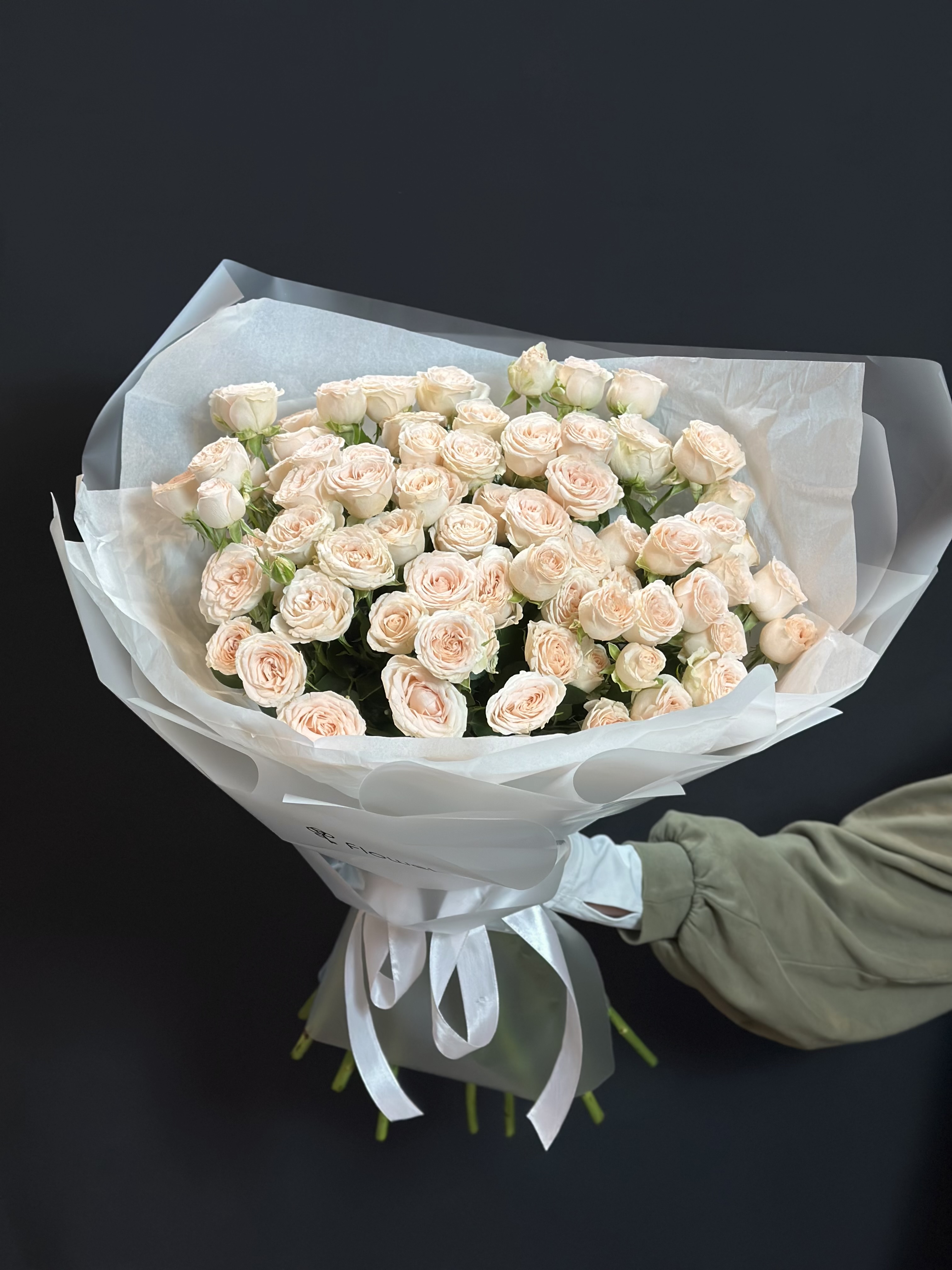 Импозантный и пышный букет, составленный из 15 веток кустовых роз. Множество нежных бутонов создают эффект объемного цветочного облака. Такой букет говорит о щедрости чувств и станет незабываемым подарком на юбилей или торжество.
