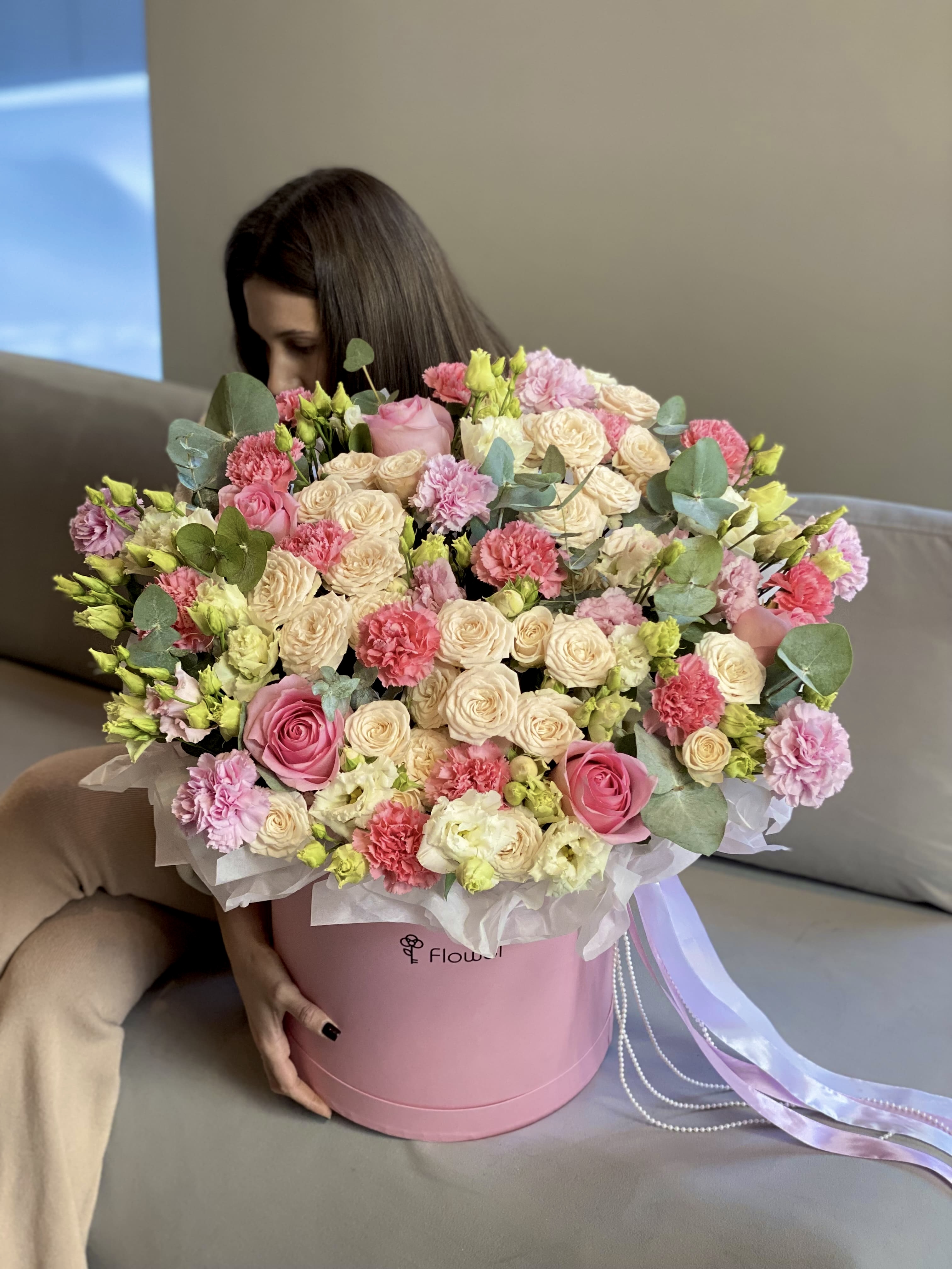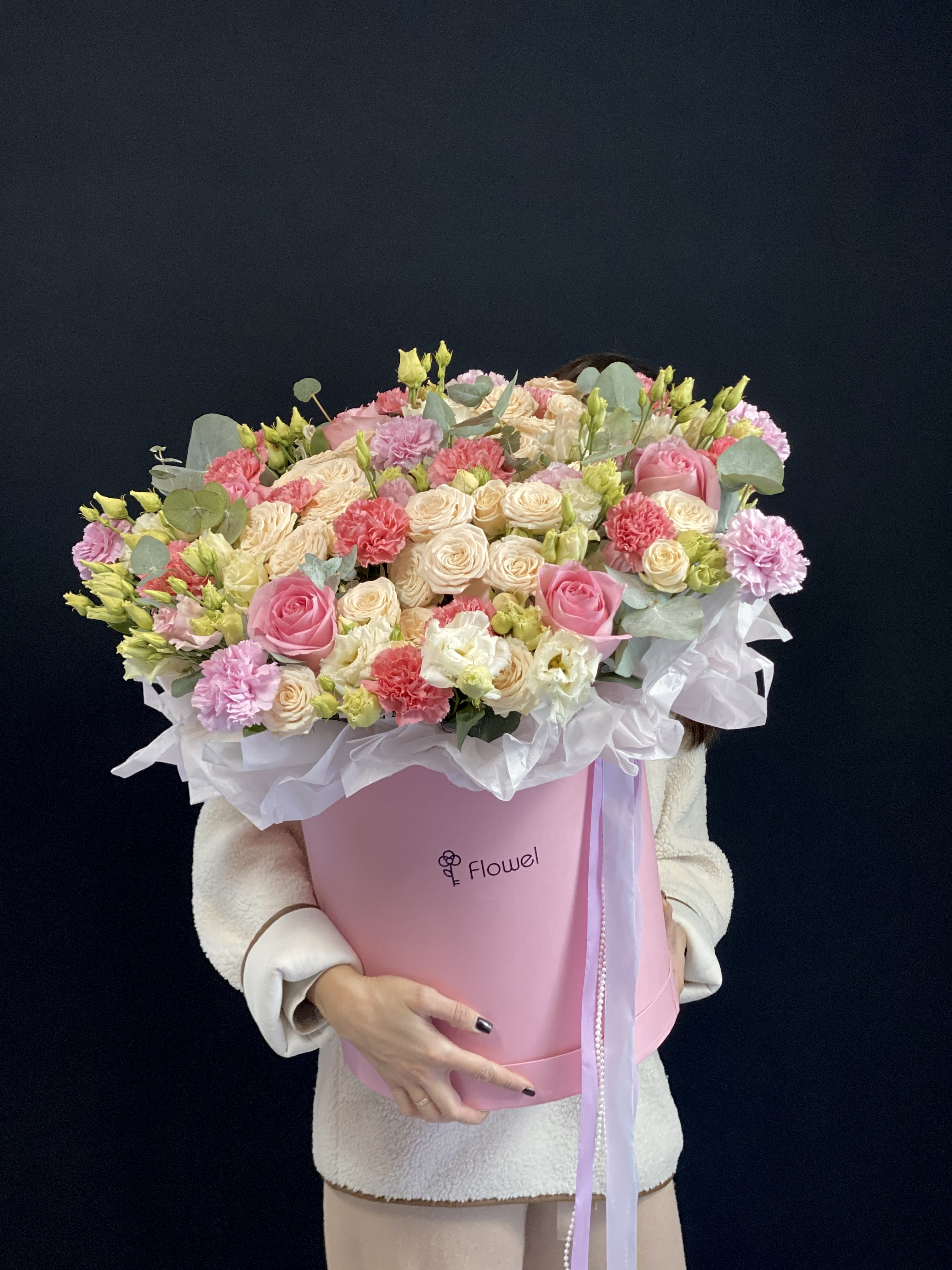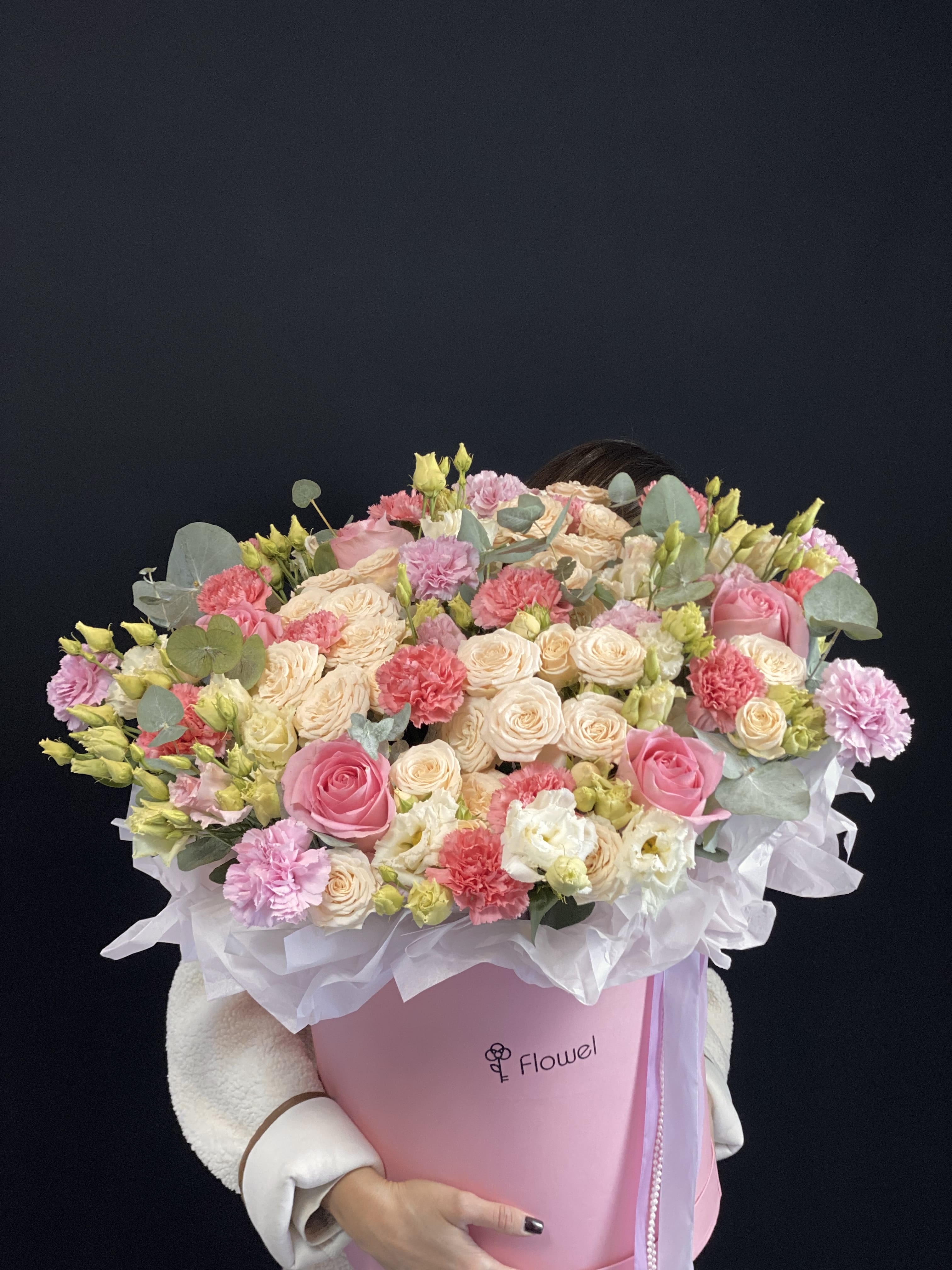 ✅ РЕКОРДНАЯ СТОЙКОСТЬ: 19 гвоздик и эустомы гарантируют, что композиция будет сиять свежестью 2-3 недели. Это выгодно и практично!