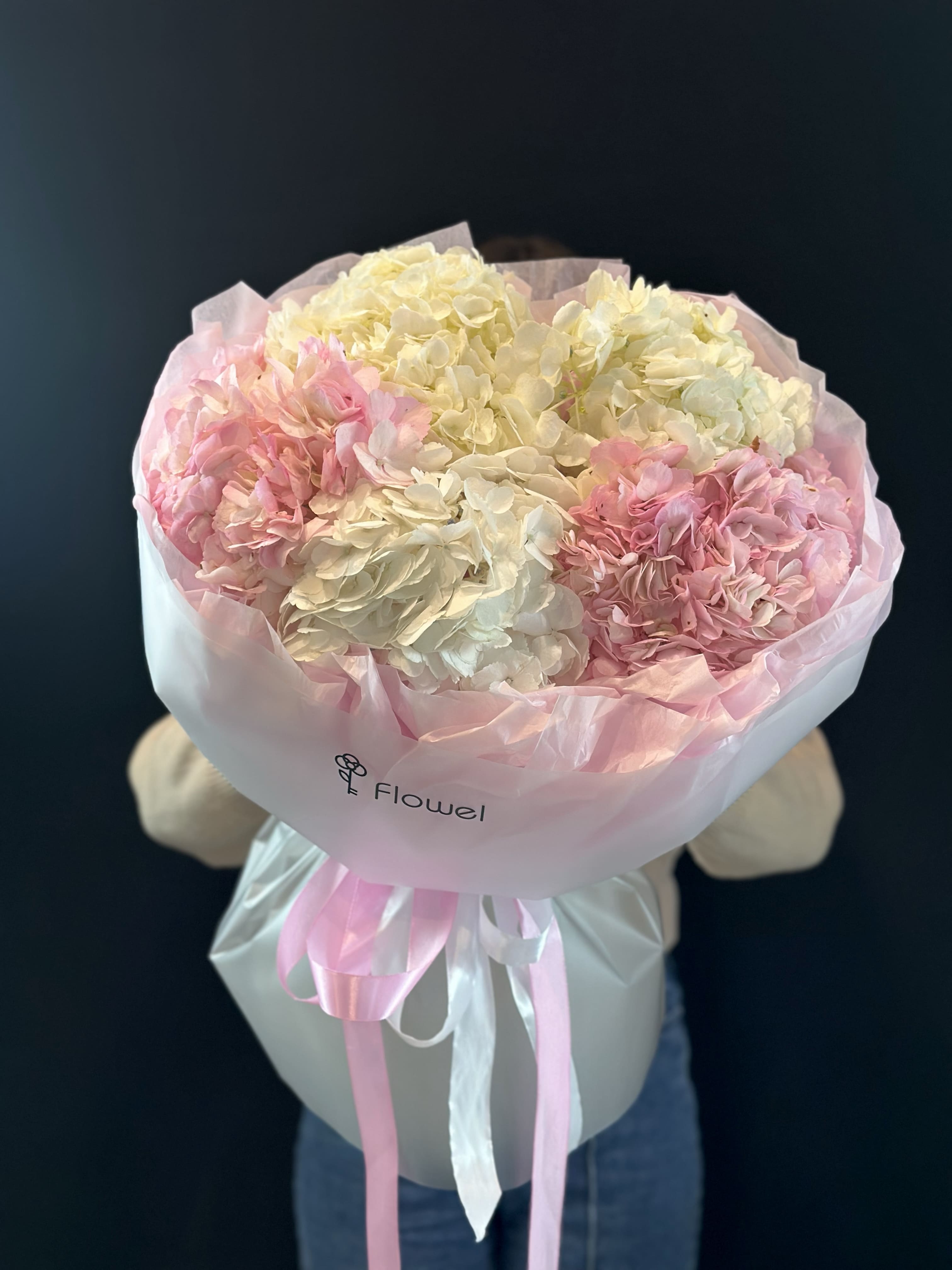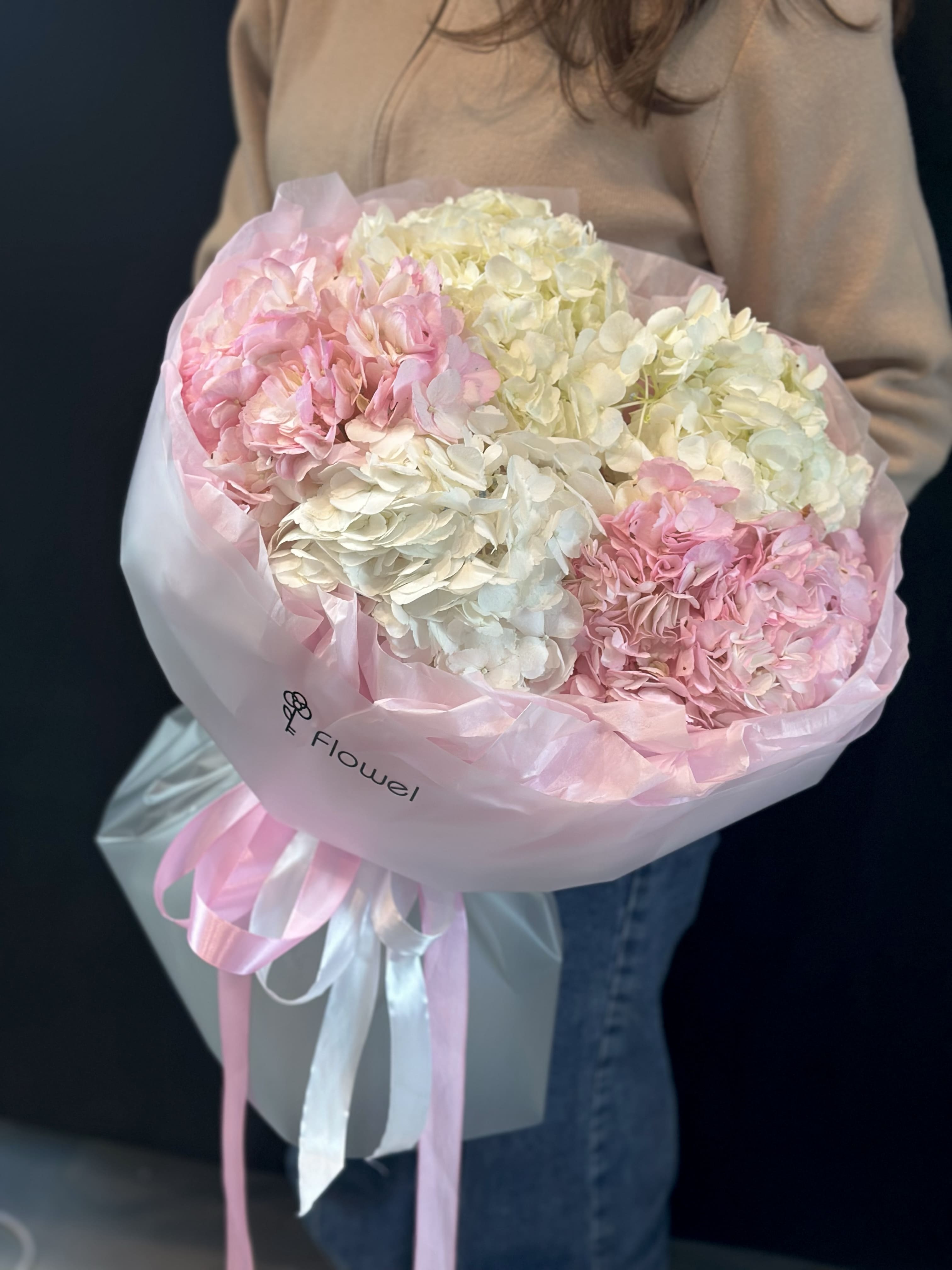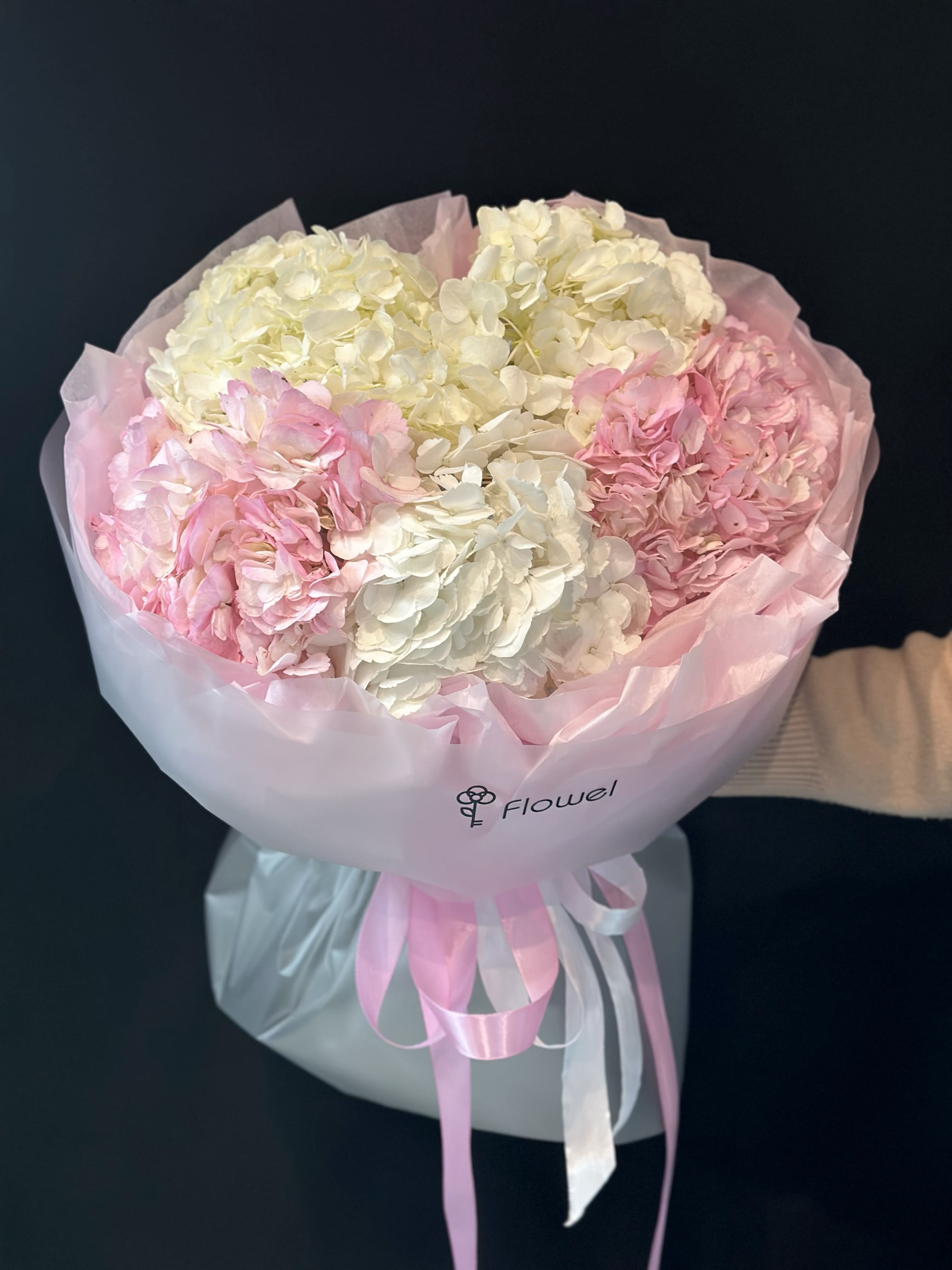 Букет белых и розовых гортензий