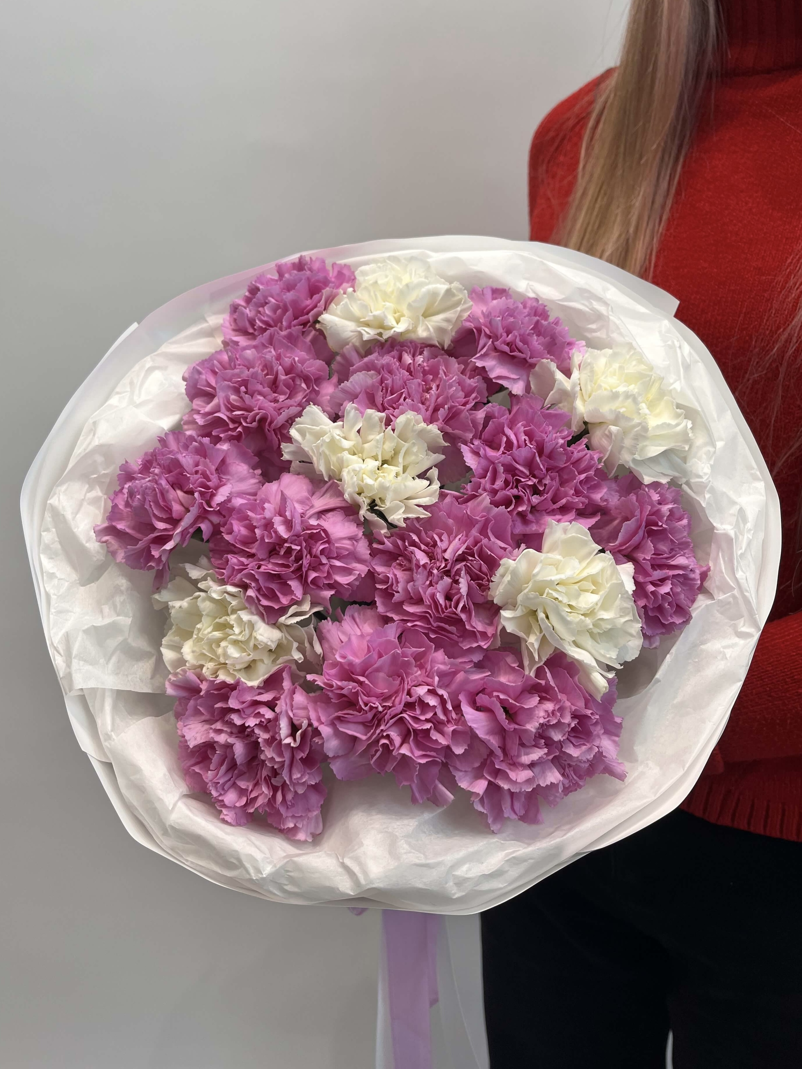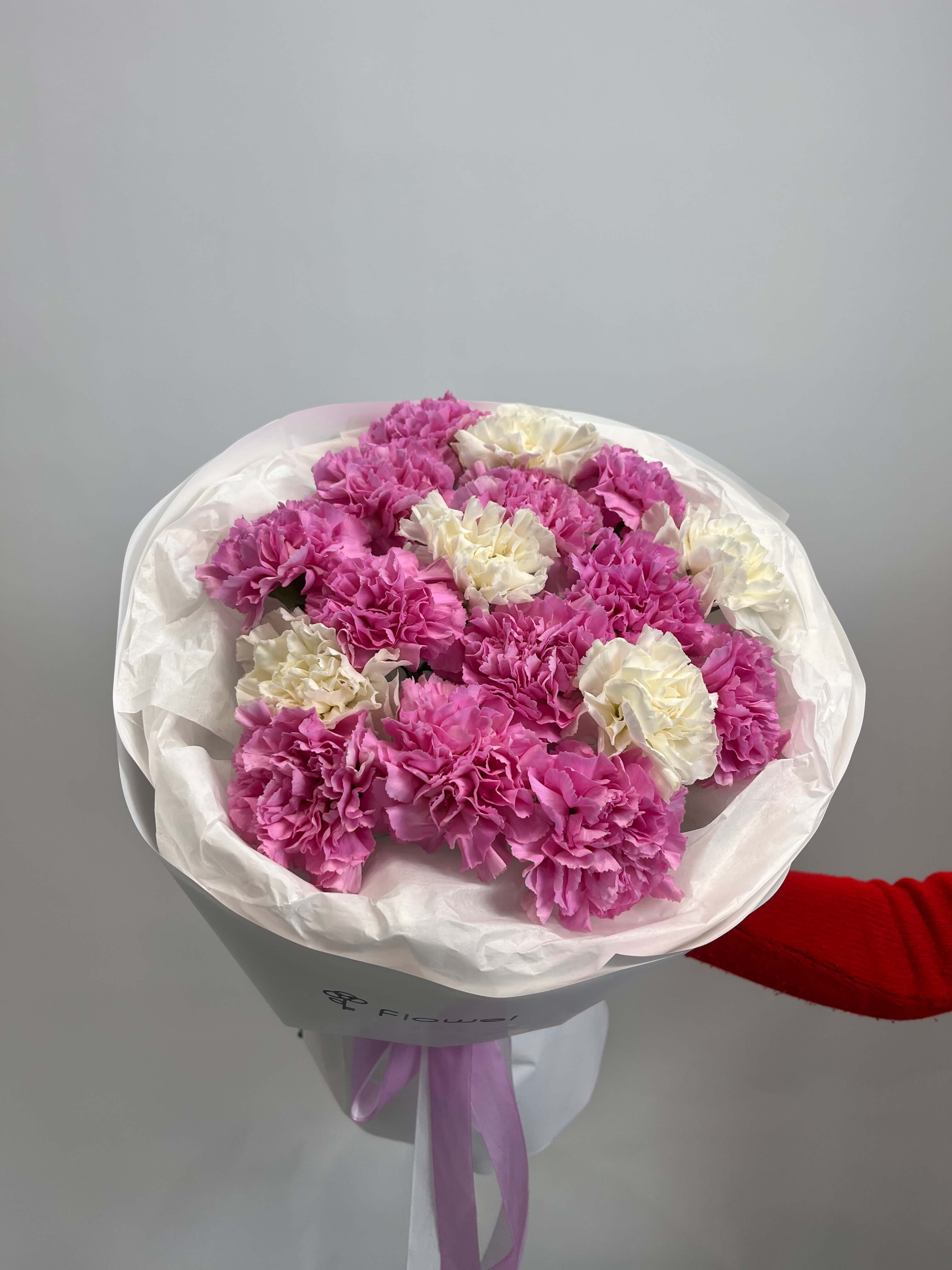 Букет из 17 гвоздик холодно розовых и белых цветов
