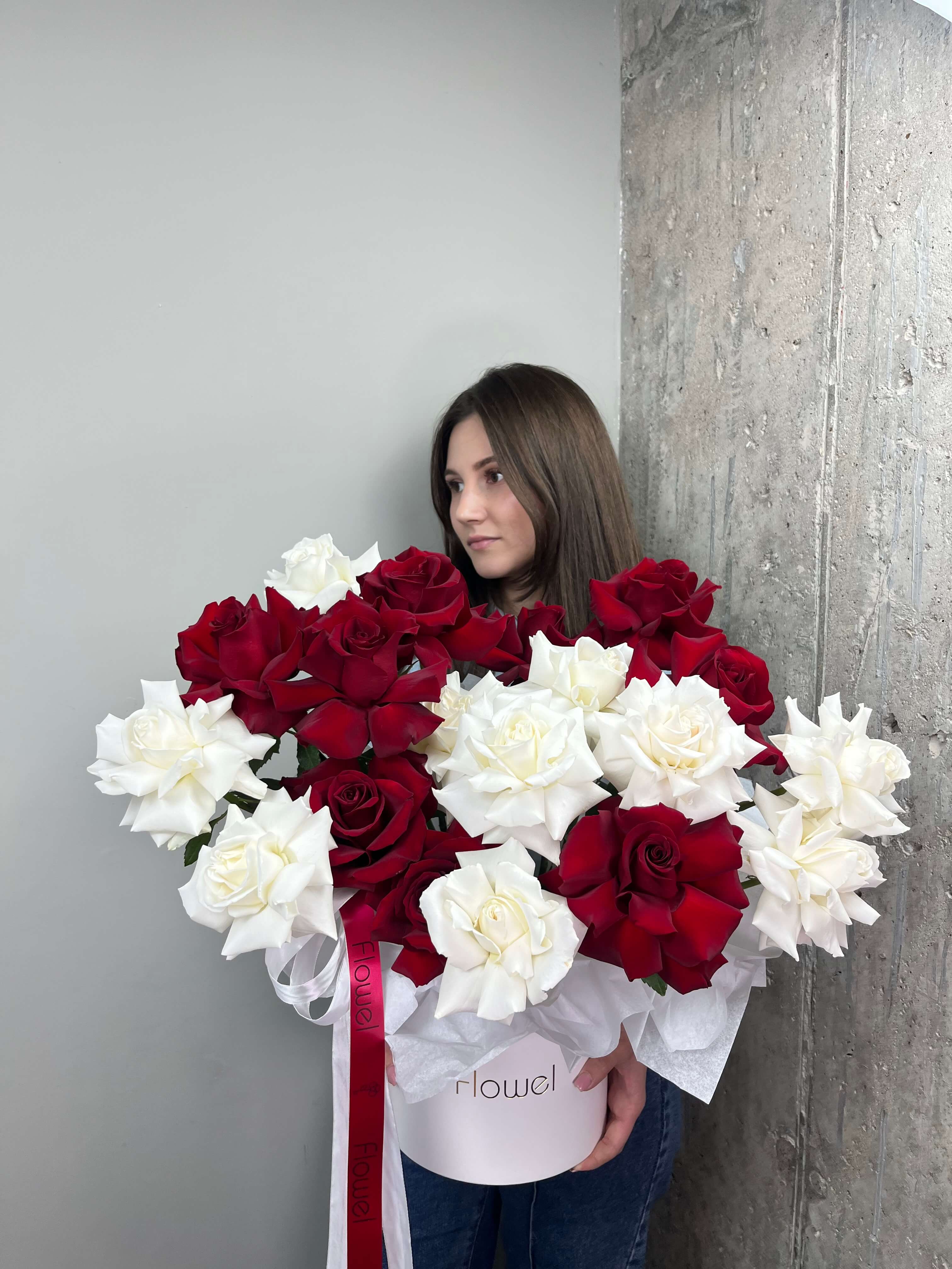 Симфония страсти и чистоты. Сочетание алых и белых роз в одной композиции создает глубокий контраст, символизирующий единство любви и искренности, страсти и невинности. Идеальный подарок со смыслом.