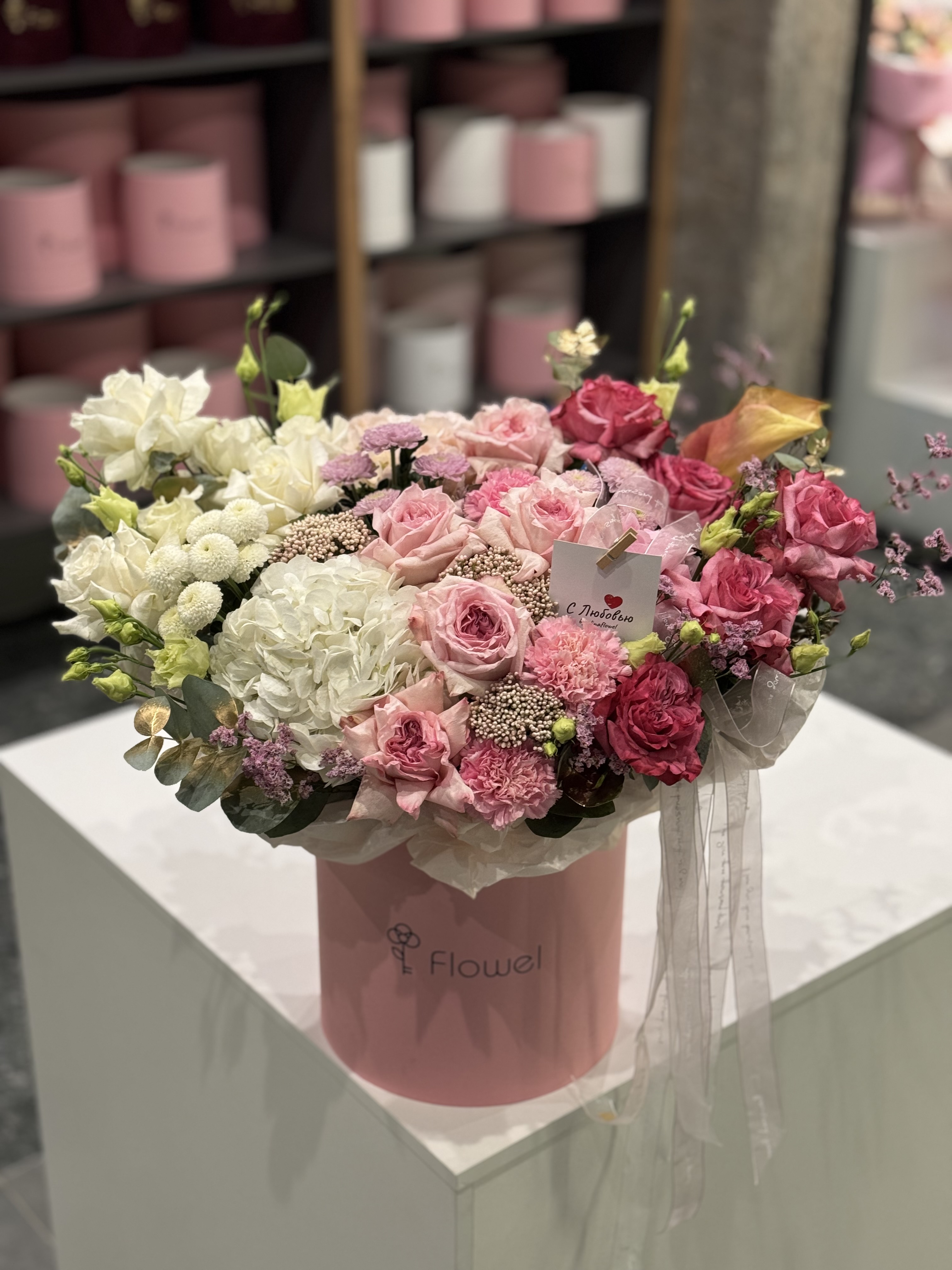 Эта композиция создана для того, чтобы дарить ощущение покоя, защищённости и трогательной красоты. «Нежная пена» — это флористическое воплощение мягкости, где острые углы и резкие контрасты сглажены, уступая место плавным формам, пастельным оттенкам и щедрому, но не давящему объёму. Она будто приглашает замедлиться, расслабиться и насладиться моментом тихого созерцания.