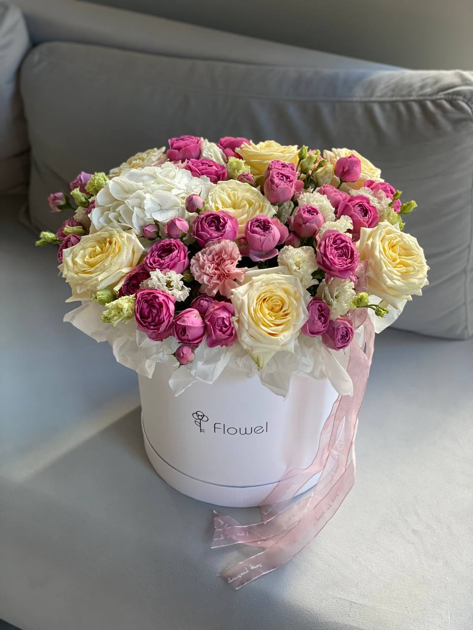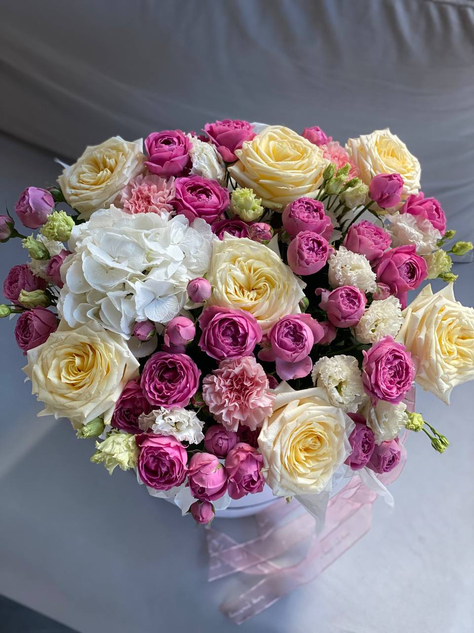 Эта композиция создана для мгновений, когда хочется остановить время и сохранить ощущение лёгкого, беззаботного счастья. «Сахарная вата» — это флористическая метафора самых тёплых и светлых воспоминаний. Она построена вокруг уникальных кустовых роз «Misty Bubbles», чьи мелкие, махровые бутоны цвета утренней дымки задают основной тон — трогательный, немного ностальгический и невероятно женственный.
